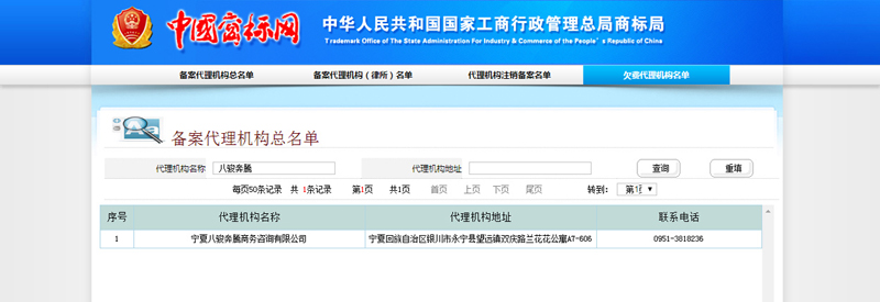 寧夏八駿奔騰商務(wù)咨詢有限公司取得國家商標(biāo)局備案資質(zhì)