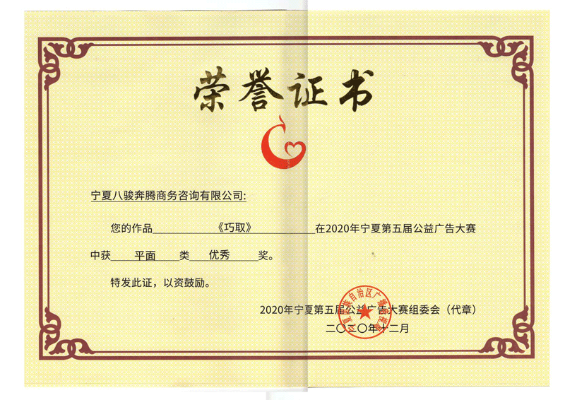 歷屆寧夏公益廣告大賽獲獎(jiǎng)證書