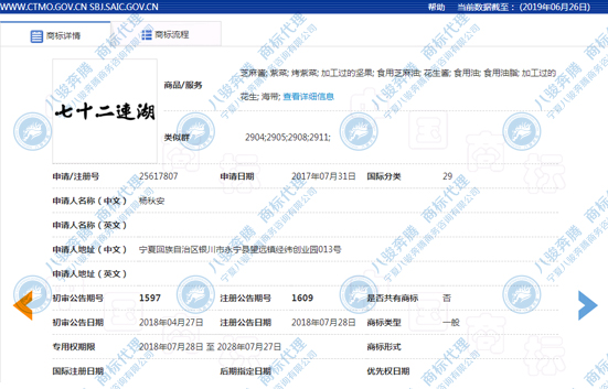 商標簡介:七十二連湖,銀川名湖之一,與鳴翠湖、寶湖、閱海湖、鶴泉湖等一起助力“塞上湖城”銀川的美名!商標包括了第29類食品、第30類植物類食品及調(diào)味品、第33類酒精類飲料等,是寧夏大米、面粉、胡麻油等商標不可多得的好商標,欲購從速。詳詢:18295417569。